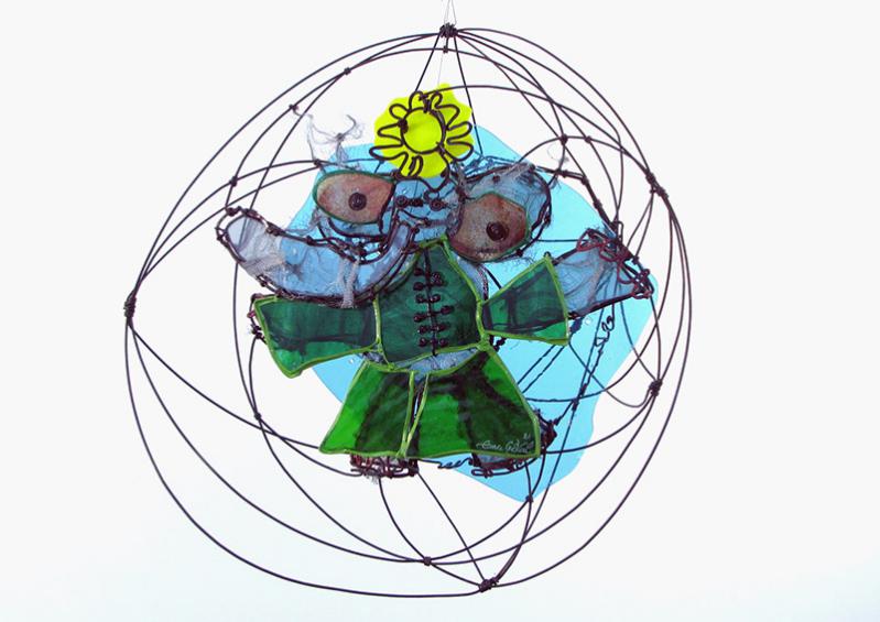 Sculpture murale, verre, métal